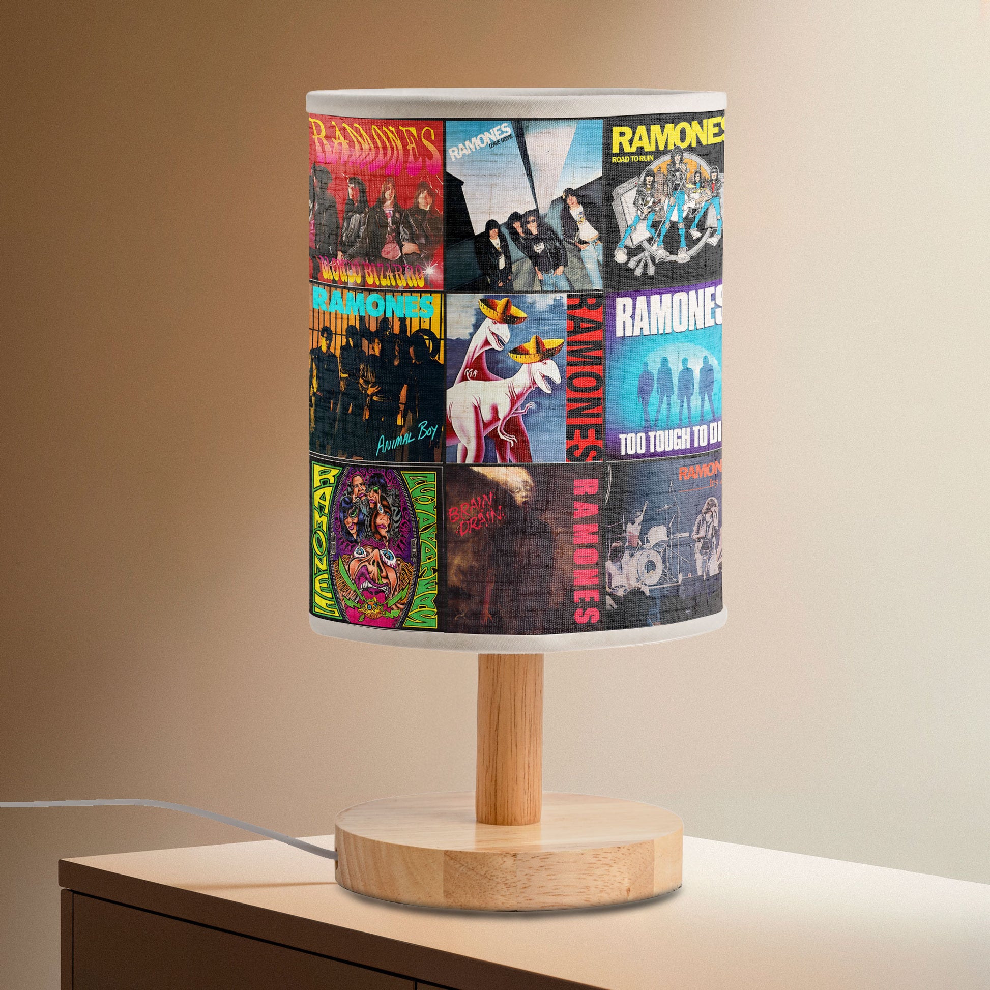 Light up your nights with the raw energy of punk rock. This lamp features a collage of iconic Ramones album covers — from Rocket to Russia to Too Tough to Die — glowing with rebellion, rhythm, and underground attitude.