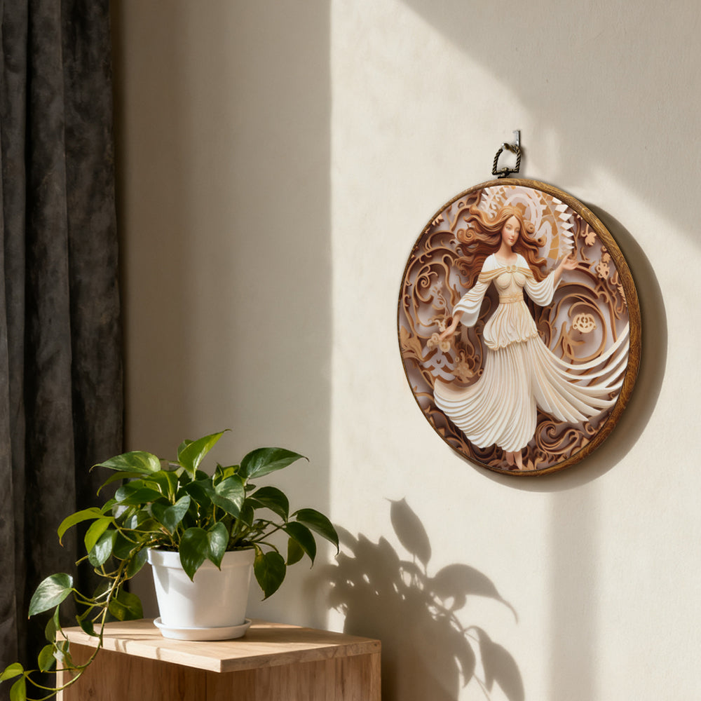 Embodying serenity and beauty, this Angel of Grace Framed Round Wall Art captures the gentle movement of an angel in flowing robes, surrounded by intricate golden swirls crafted in an elegant paper sculpture style. Her calm expression and graceful form radiate peace, protection, and divine harmony.