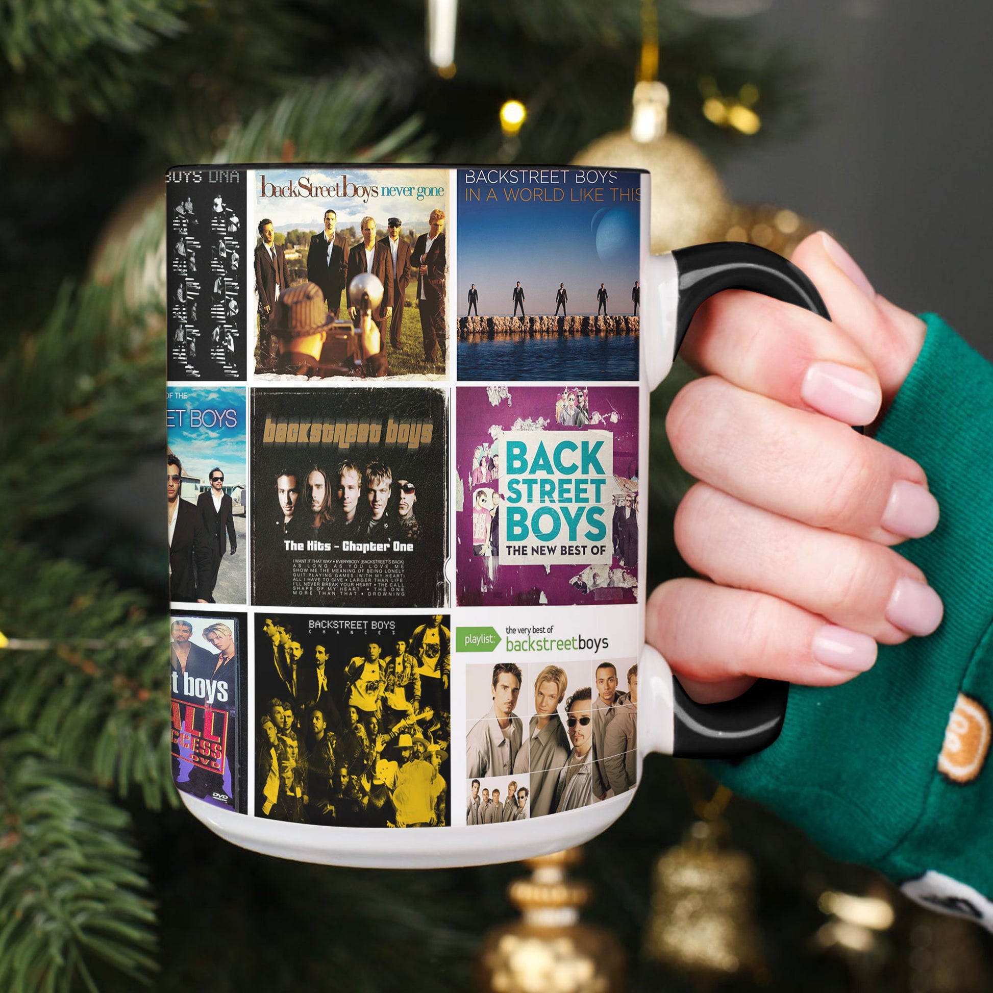 A vibrant accent mug featuring a nostalgic collage of classic Backstreet Boys album covers. Perfect for fans who grew up with their timeless pop anthems and want to relive those golden music moments. A cozy everyday mug that celebrates the energy, style, and unforgettable legacy of one of the biggest boy bands in history. ✨☕️