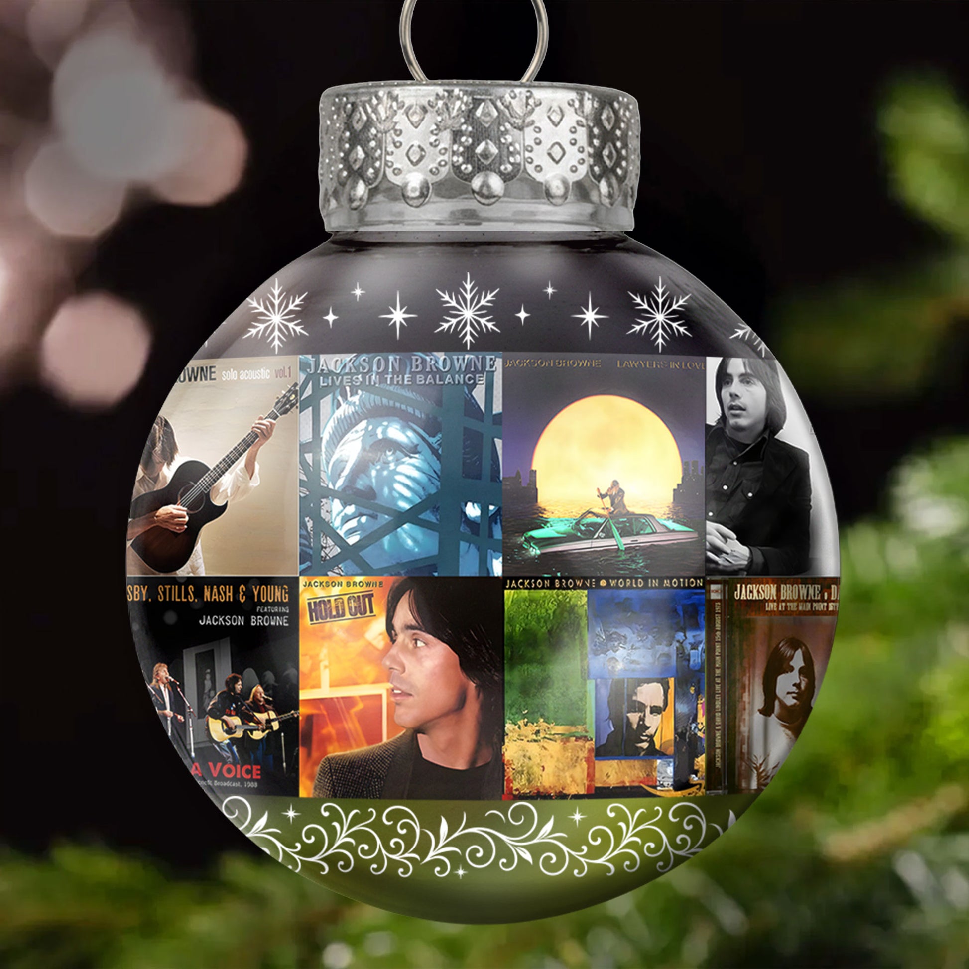 Bring the rhythm of the dance floor to your holiday décor with the Bee Gees Ball Ornament. Featuring their most iconic album covers on a dazzling glitter blue background, this ornament celebrates the timeless sound of harmony and groove. A perfect keepsake for fans of disco, soul, and golden-era pop magic.