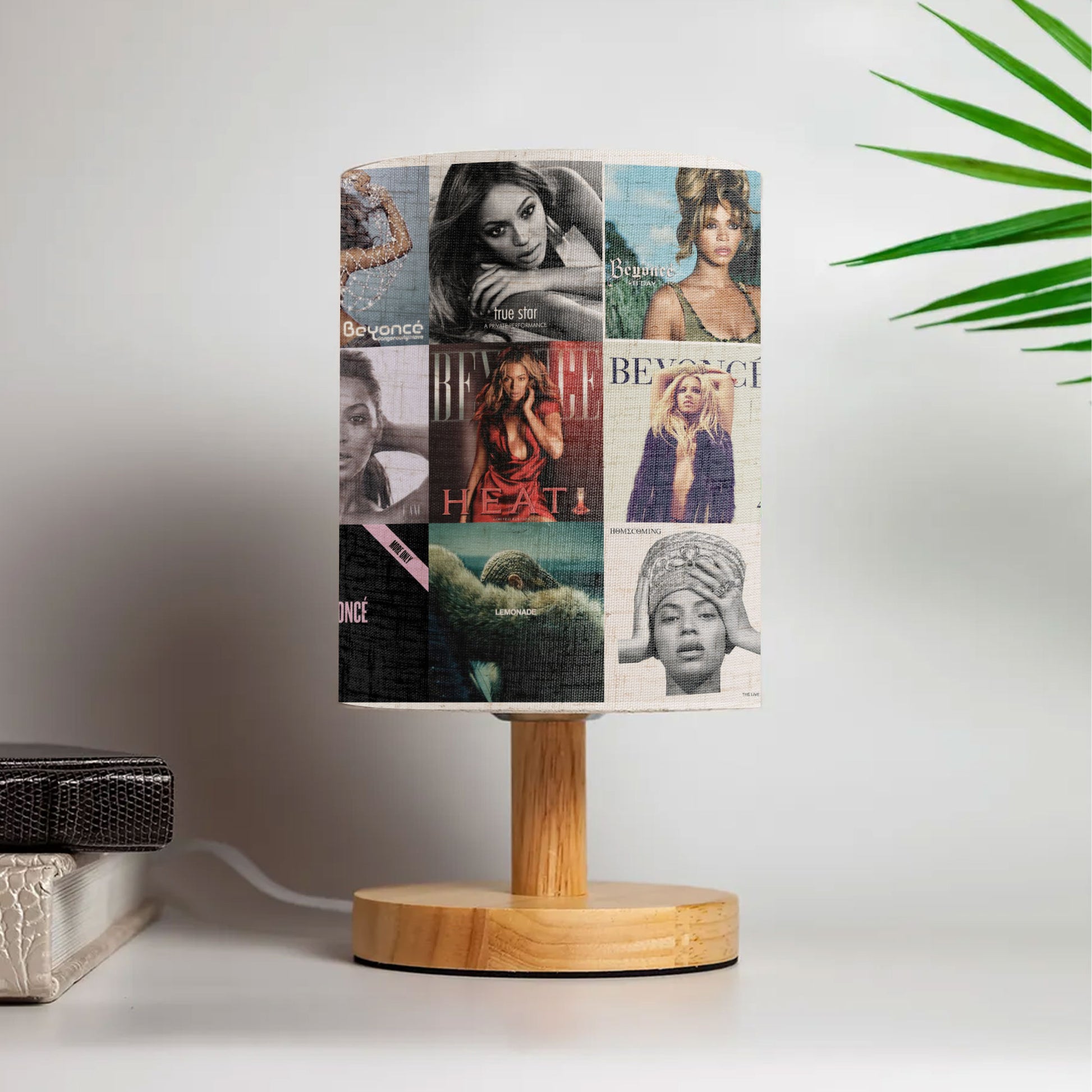 Bring the energy of Queen Bey into your home. This Beyoncé fabric lamp features a collage of her most iconic album and project covers, adding both light and star power to your space. Perfect for fans, collectors, or as a bold decorative piece for any room.