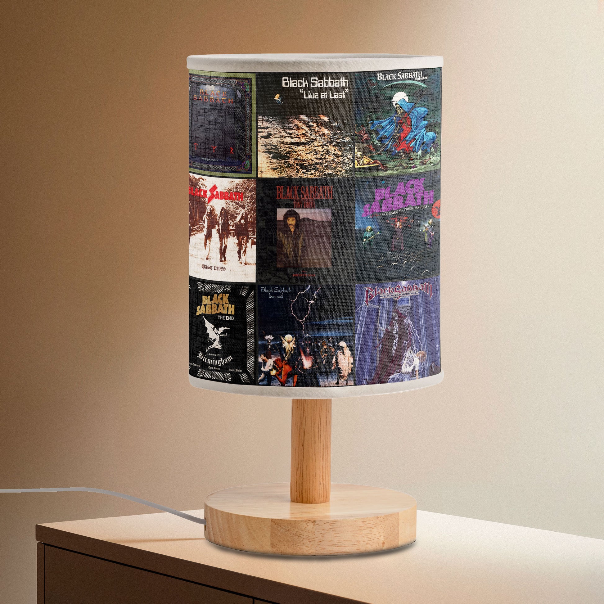 Light up your space with the heavy metal spirit of Black Sabbath! This unique lamp features a collage of iconic Black Sabbath album covers, from Master of Reality to Heaven and Hell, wrapped around a warm fabric lampshade. Perfect for bedrooms, music studios, or any fan cave, it combines cozy ambient lighting with legendary rock nostalgia. A must-have decor piece for true Black Sabbath fans and lovers of classic rock history.