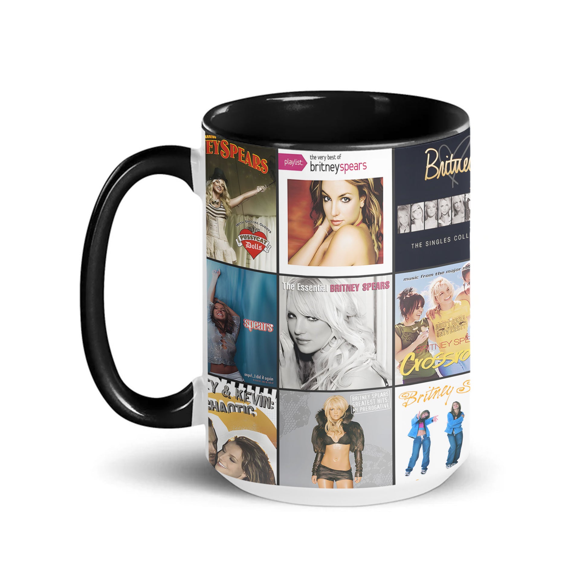A fun and vibrant Accent Mug celebrating the unforgettable career of Britney Spears, wrapped in a lively collage of her most iconic album and singles artwork. Perfect for fans who grew up with her music and want a daily dose of pop nostalgia.