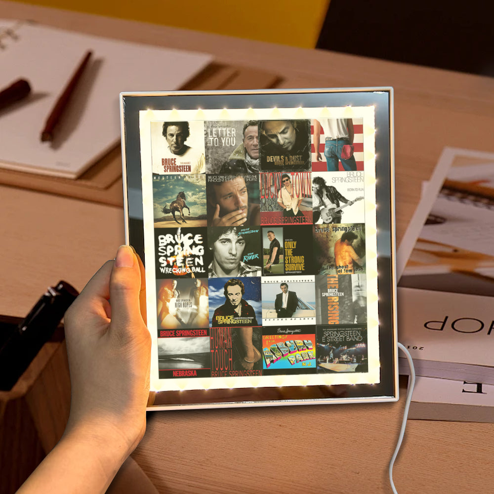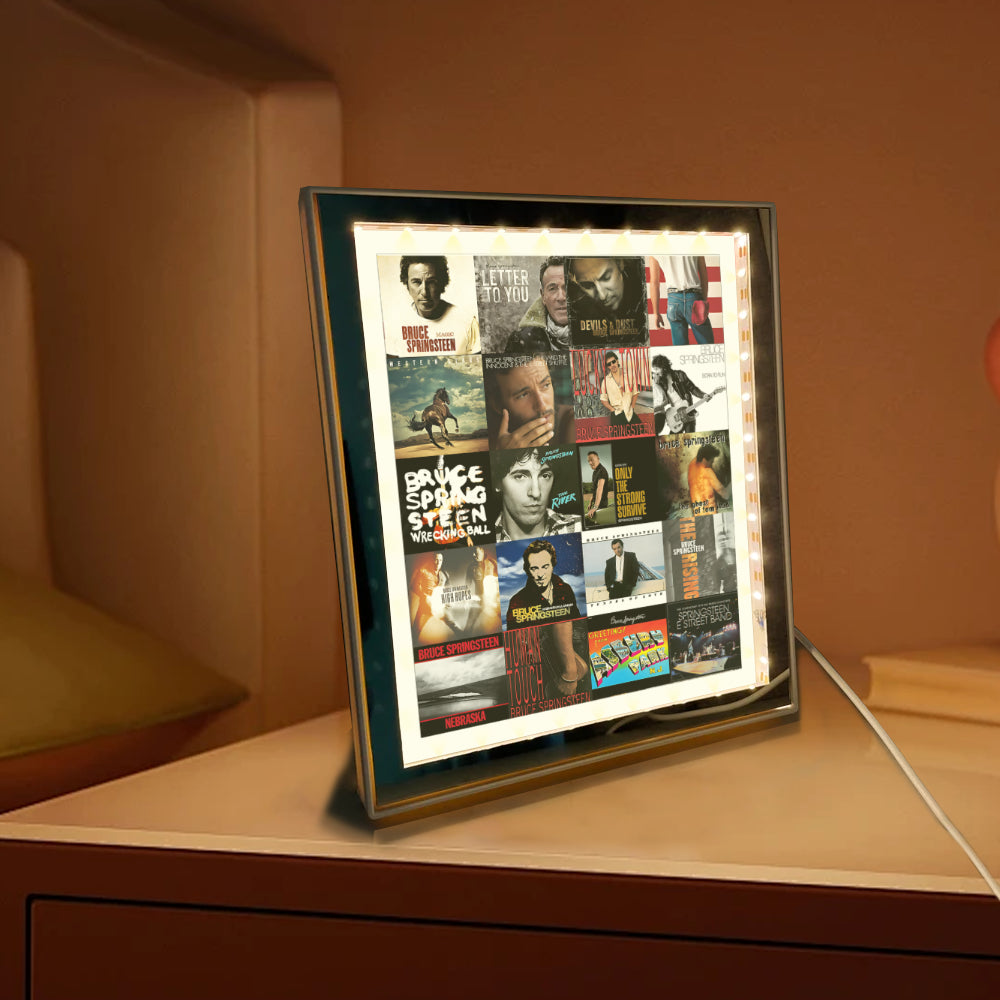 Celebrate the timeless spirit of The Boss with this Bruce Springsteen Acrylic Light Mirror, a perfect fusion of artistry and function. When turned off, it serves as a sleek, high-definition mirror — ideal for your daily use. Switch it on, and it transforms into a glowing tribute featuring iconic Bruce Springsteen album covers, bringing warmth and nostalgia to your space.