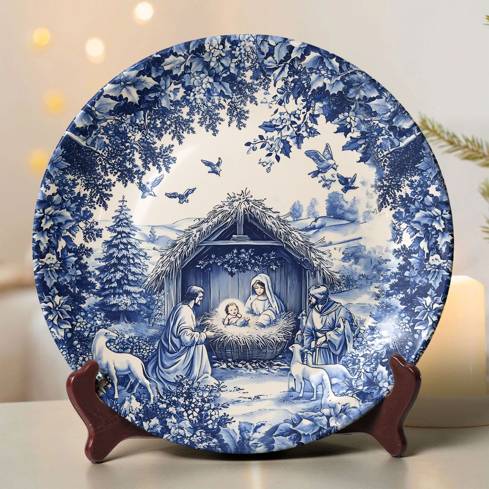 Christmas Nativity Collectible Ceramic Plate – Blue Winter Design