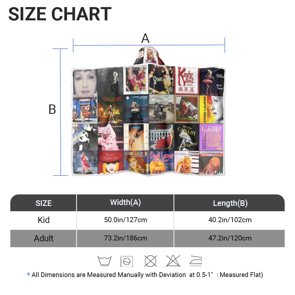 This wearable hooded blanket is made for true Cyndi Lauper fans — the ones who still feel a spark when they hear Girls Just Want to Have Fun, Time After Time, or True Colors. Covered in a vibrant collage of her most iconic album and single artworks, it beautifully captures her bold style, theatrical personality, and timeless pop originality.