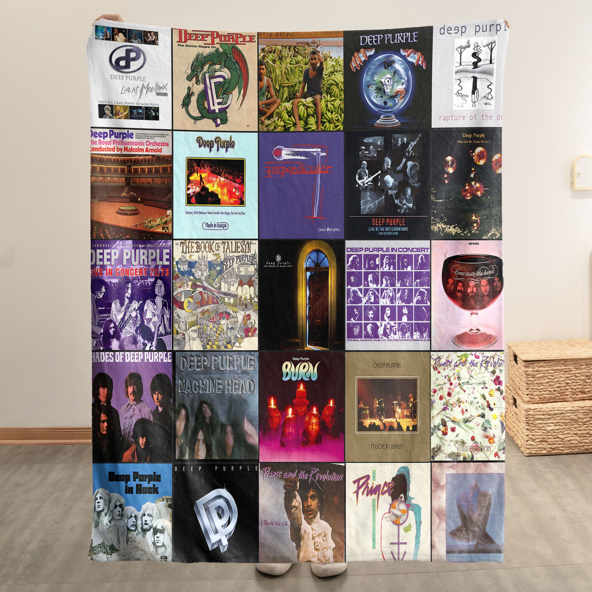 Featuring a stunning collage of Deep Purple’s most legendary records, this blanket brings decades of hard-rock energy straight into your home. From Machine Head to Burn and beyond, each panel is a tribute to the riffs, solos, and stage moments that shaped rock music forever.