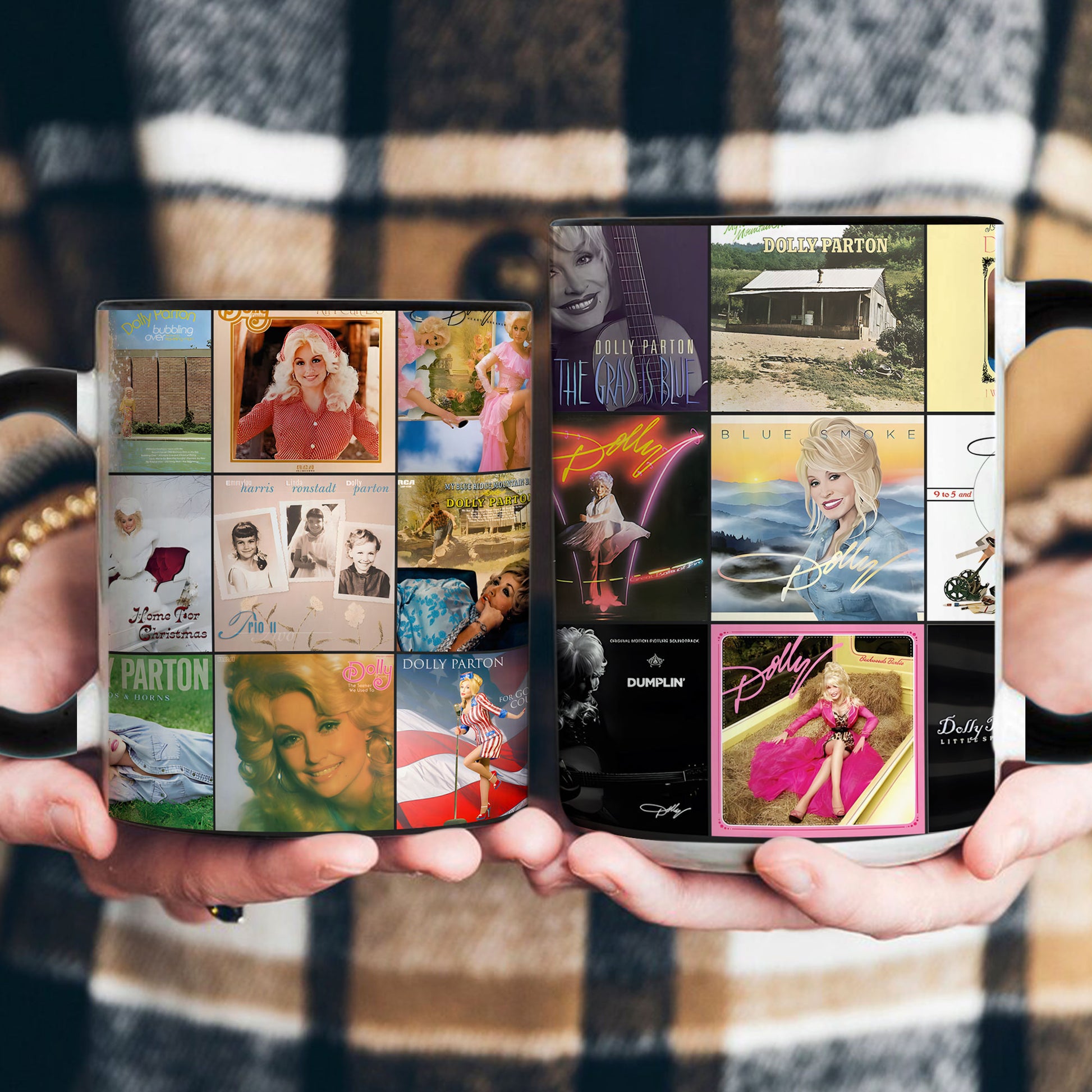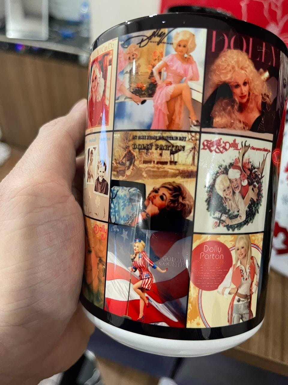Celebrate the sparkle, heart, and timeless voice of Dolly Parton with this beautiful Accent Mug. Featuring a collage of her most iconic album covers, it captures the warmth and inspiration she’s brought to generations of fans. Perfect for country music lovers, this mug brings a touch of Southern charm and nostalgia to your morning coffee or cozy evening tea.