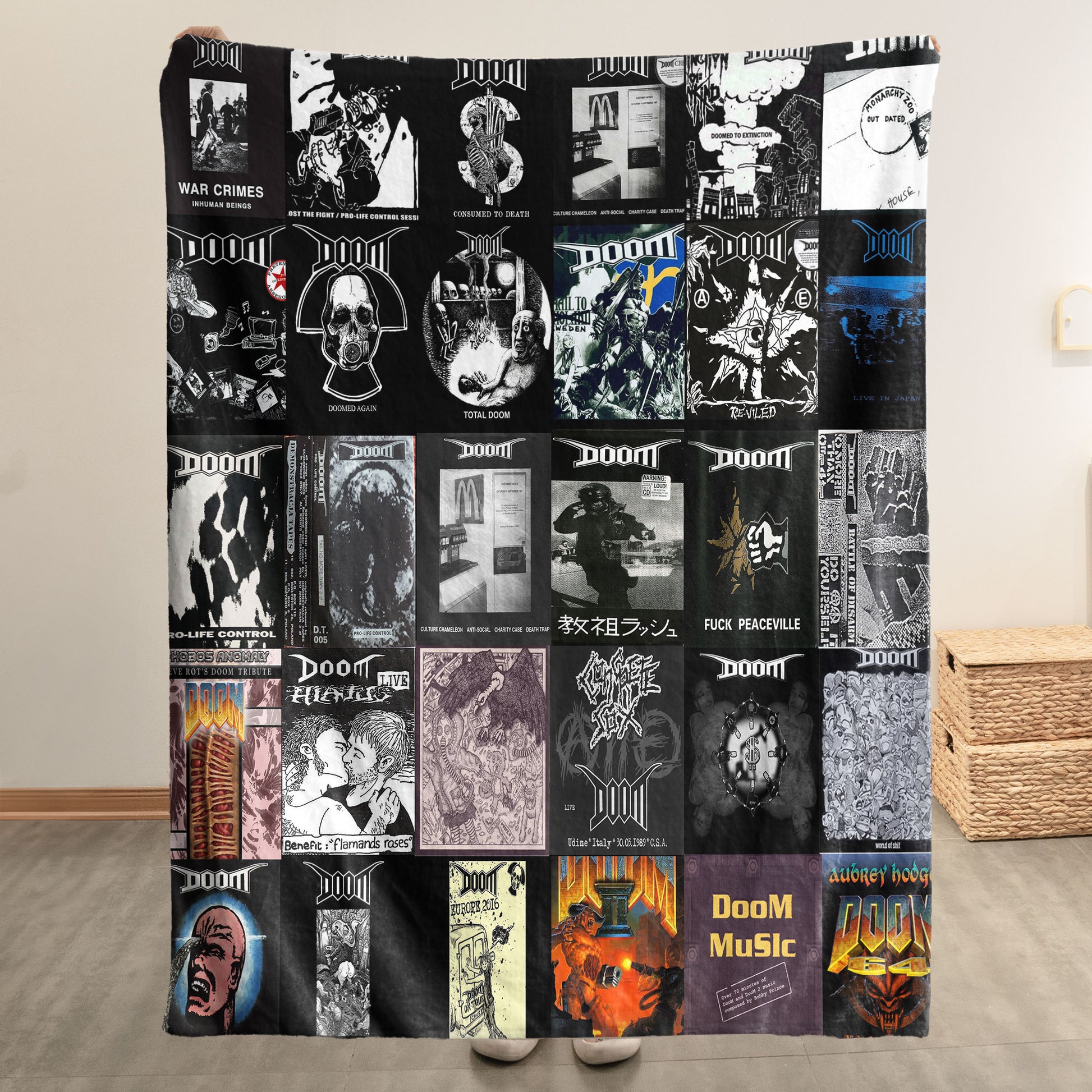 A gritty collage of iconic DOOM releases, this blanket brings back the unmistakable energy of underground punk—unfiltered, rebellious, and loud in all the right ways. Every square feels like a flashback to tape-trading days and basement shows, perfect for fans who still carry that spirit with them.