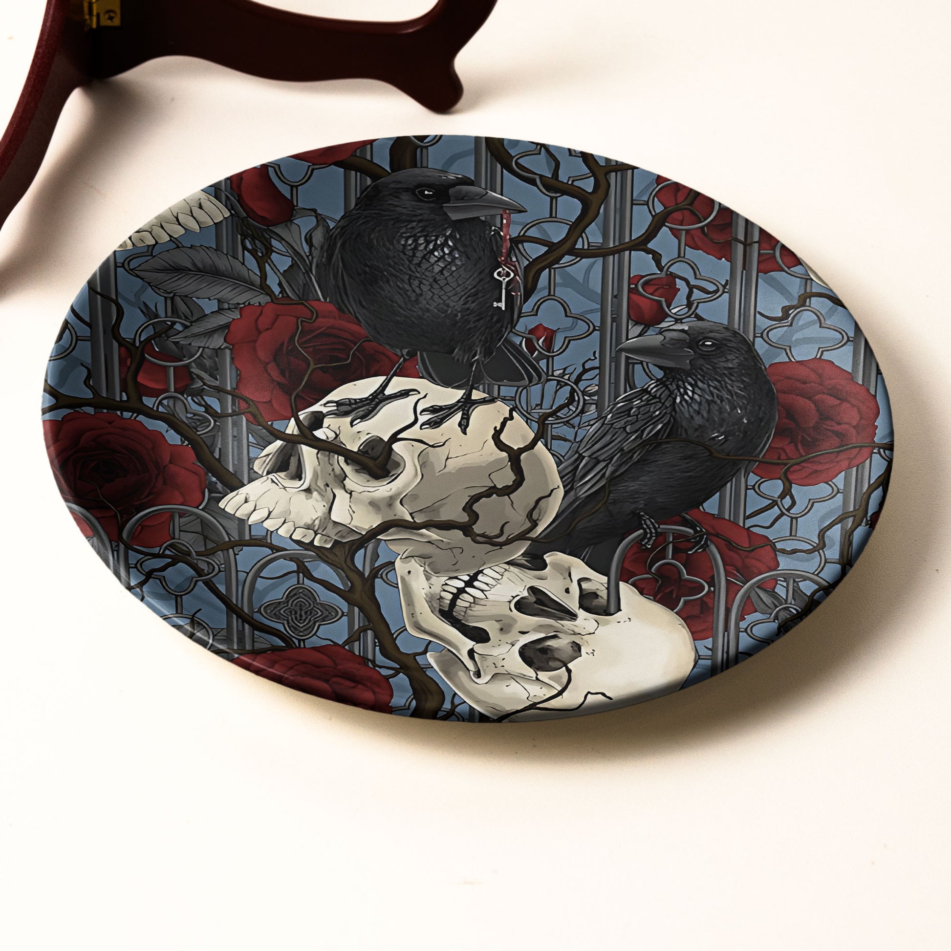 Gothic Raven & Skull Decorative Plate – Dark Romantic Home Accent