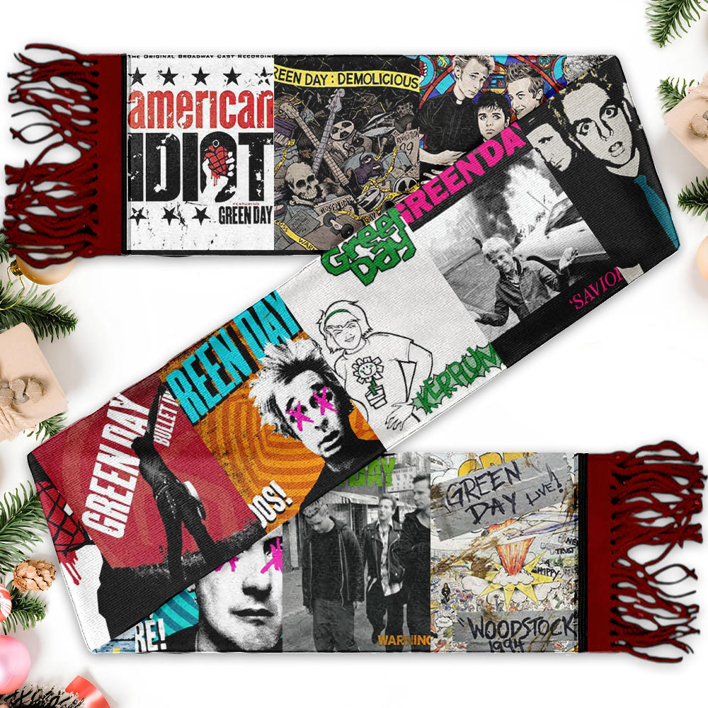 Wrap up in attitude and nostalgia with this Green Day–themed scarf featuring a collage of their most iconic album covers. Soft, warm, and packed with punk-rock energy, it’s the perfect accessory for fans who want to showcase their love for the band all winter long. Great for gifting or elevating your cold-weather style with a touch of rebellious spirit.