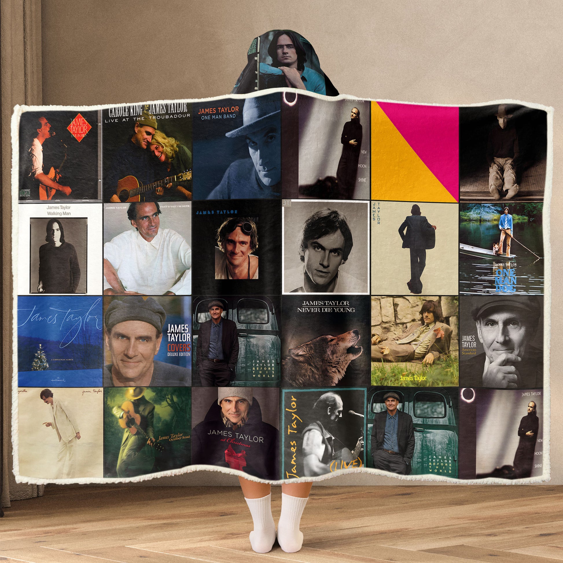 This wearable hooded blanket is made for fans who still feel the peaceful warmth and heartfelt storytelling in every James Taylor song. Wrapped in a collage of his most beloved album artwork, it brings back the comforting spirit of mellow folk-rock, soothing vocals, and timeless songwriting.