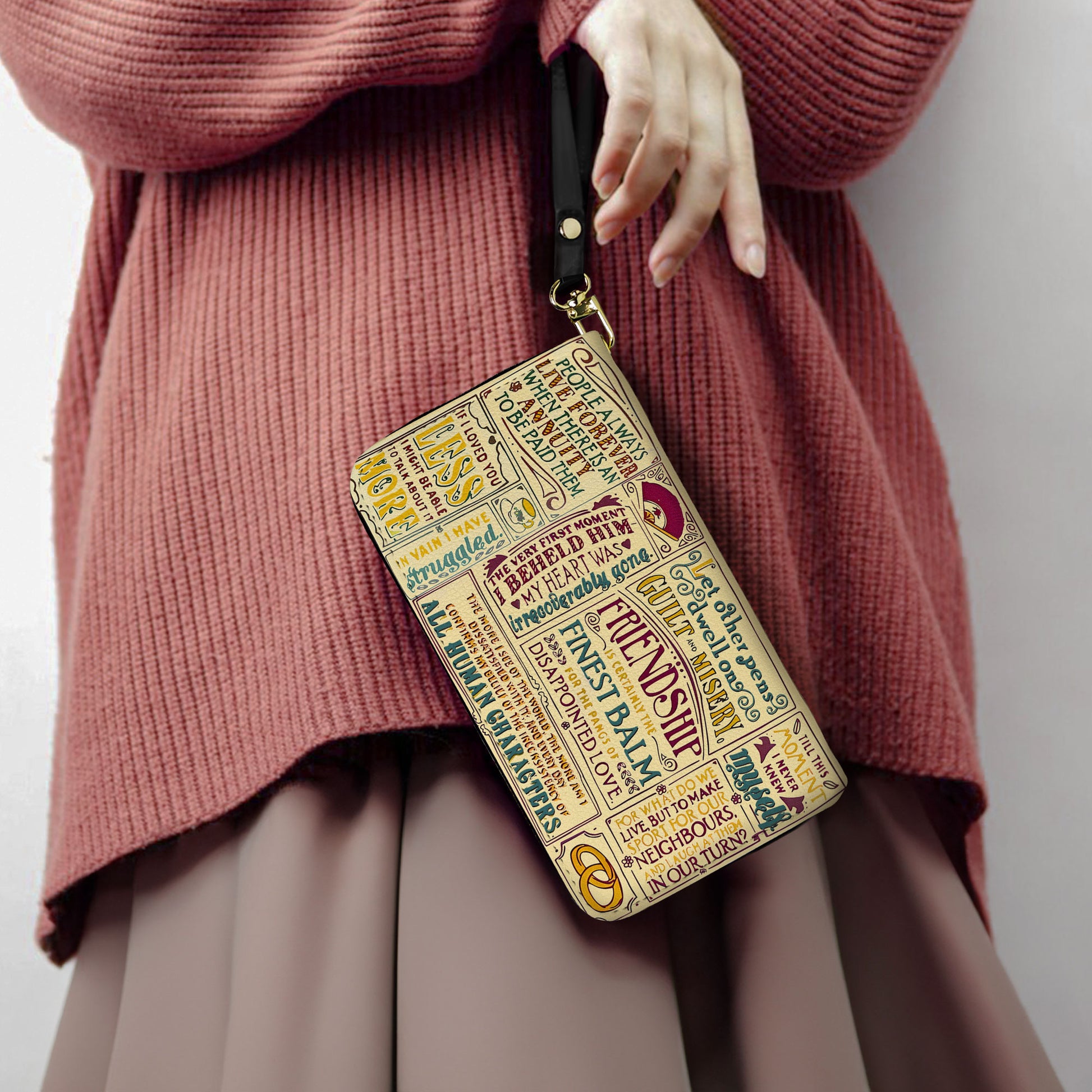 Step into the timeless world of Jane Austen with this beautifully designed wallet. Featuring her portrait surrounded by some of her most memorable quotes, this piece captures the wit, charm, and elegance of Austen’s novels. A perfect accessory for lovers of classic literature and Regency-era romance.
