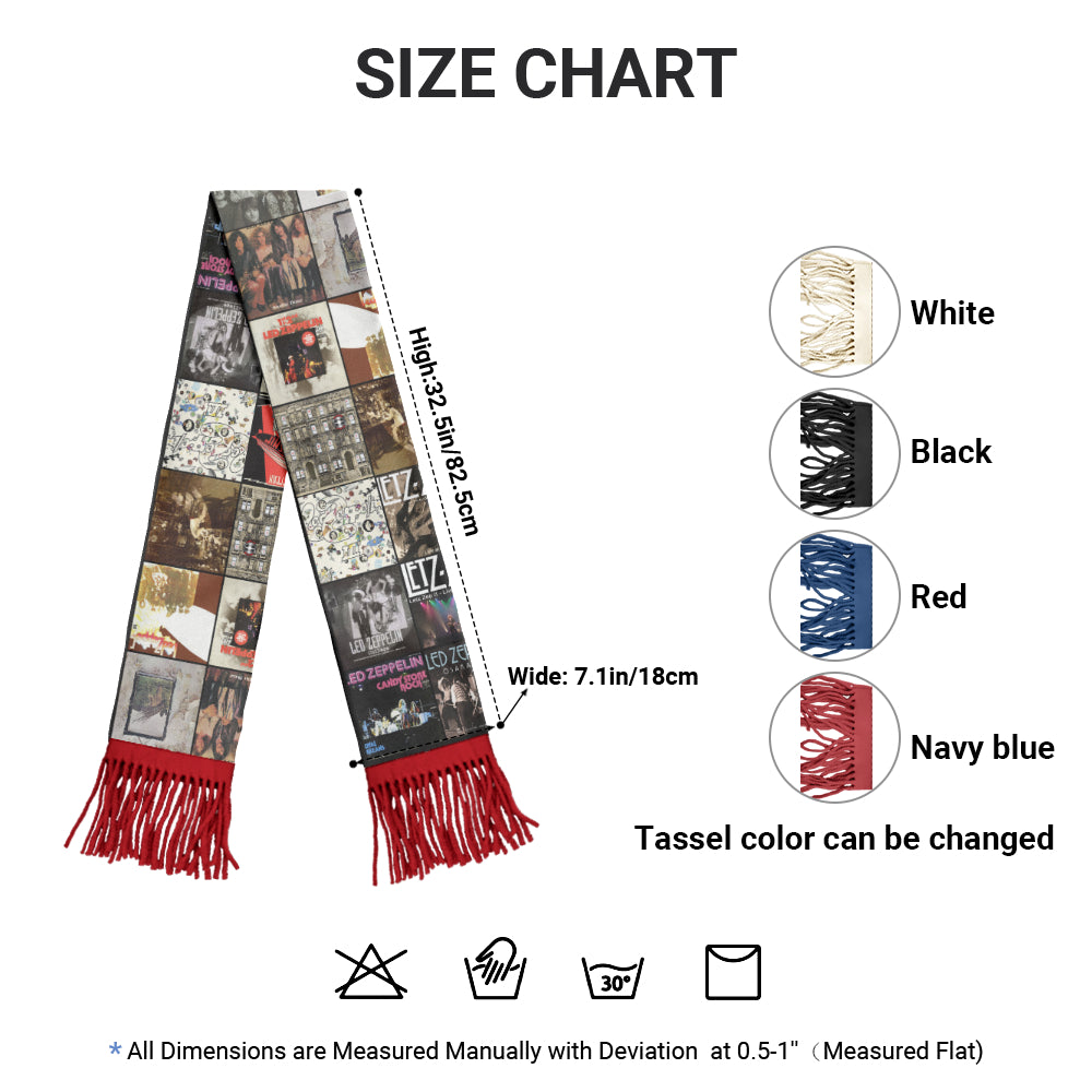 Crafted from soft, high-quality fabric, it keeps you warm and comfortable while showcasing your love for one of the greatest rock bands of all time. The deep red tassel edges add a vintage touch, making it the perfect gift for Christmas or any special occasion.