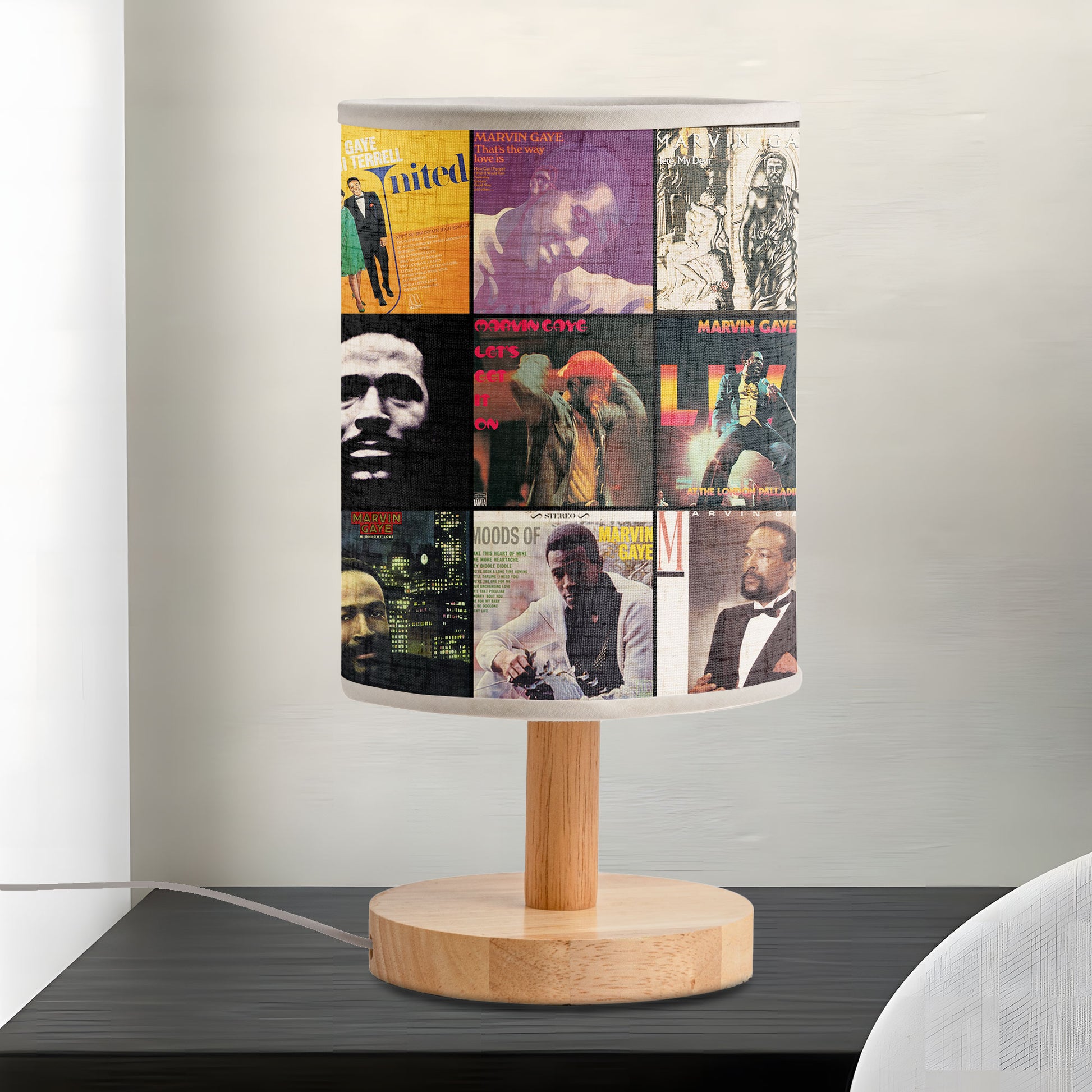 Set the mood with the smooth sound of soul using this Marvin Gaye Album Cover Lamp. Featuring a collage of his most iconic album artworks, it captures the warmth, emotion, and timeless groove that made him a legend. Perfect for fans who feel the rhythm of Motown and the depth of his lyrics — this lamp brings a soulful, nostalgic glow to any room.