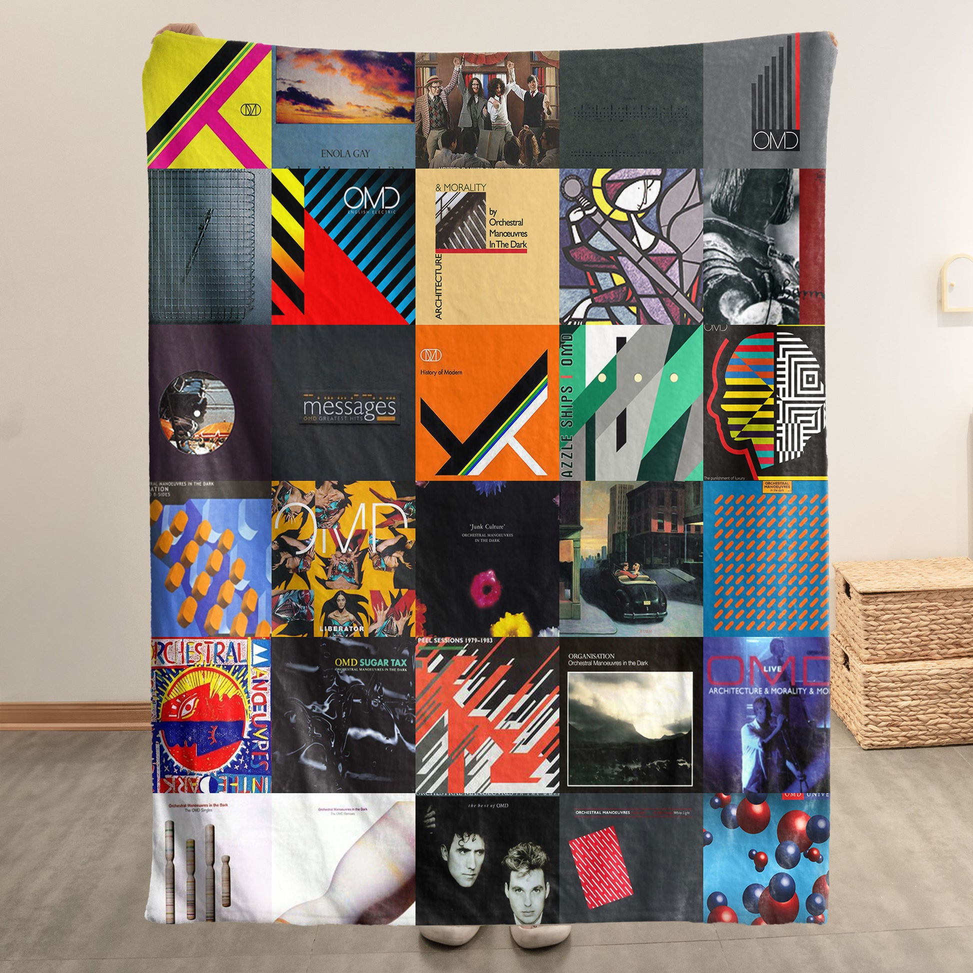 OMD Sherpa Blanket – Iconic Album Cover Collage Cozy Throw for Synth-Pop & New Wave Fans