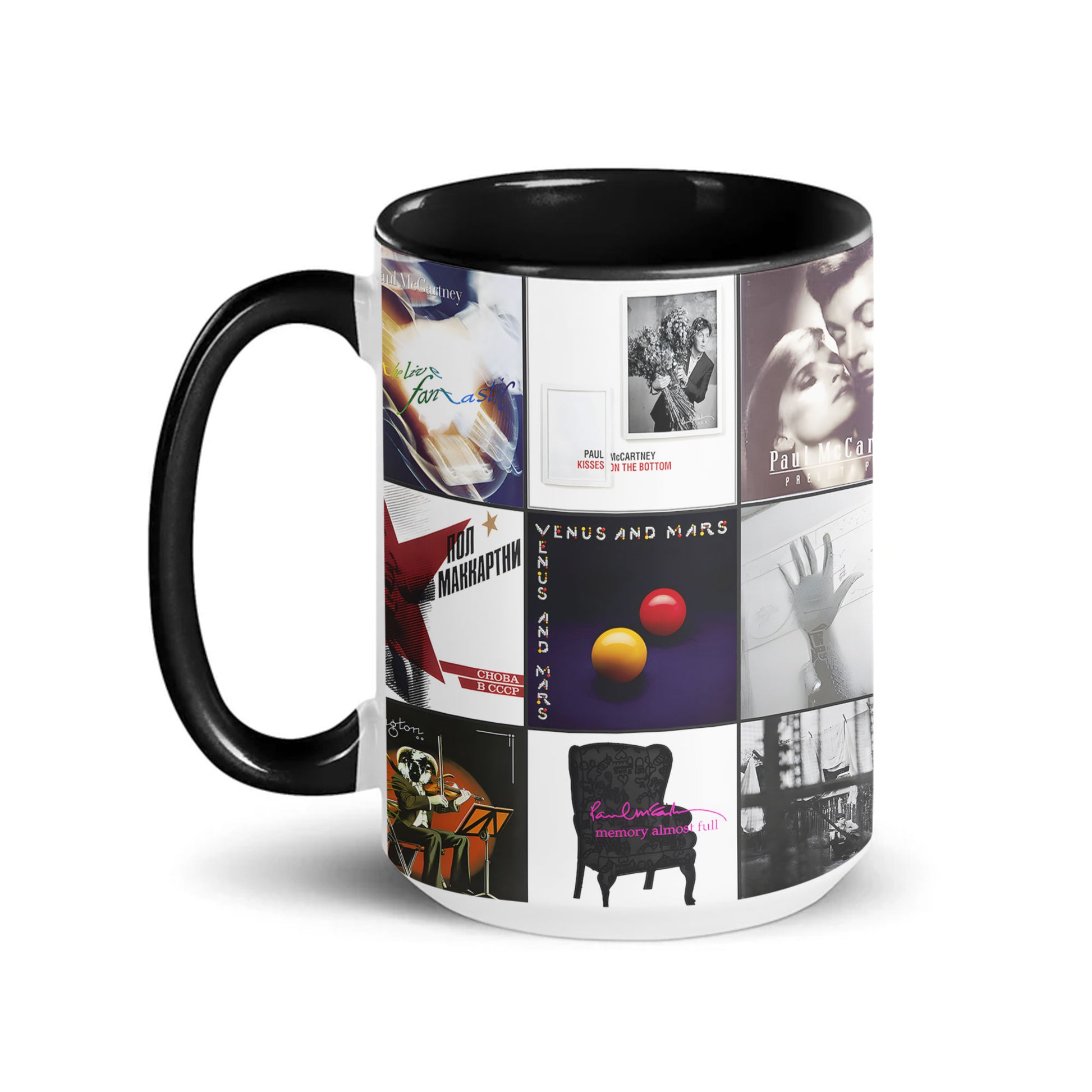 A striking Accent Mug featuring a collage of Paul McCartney’s most unforgettable album covers. Perfect for fans who treasure his timeless artistry, this mug brings classic McCartney nostalgia to every sip. A meaningful and stylish gift for any music lover.