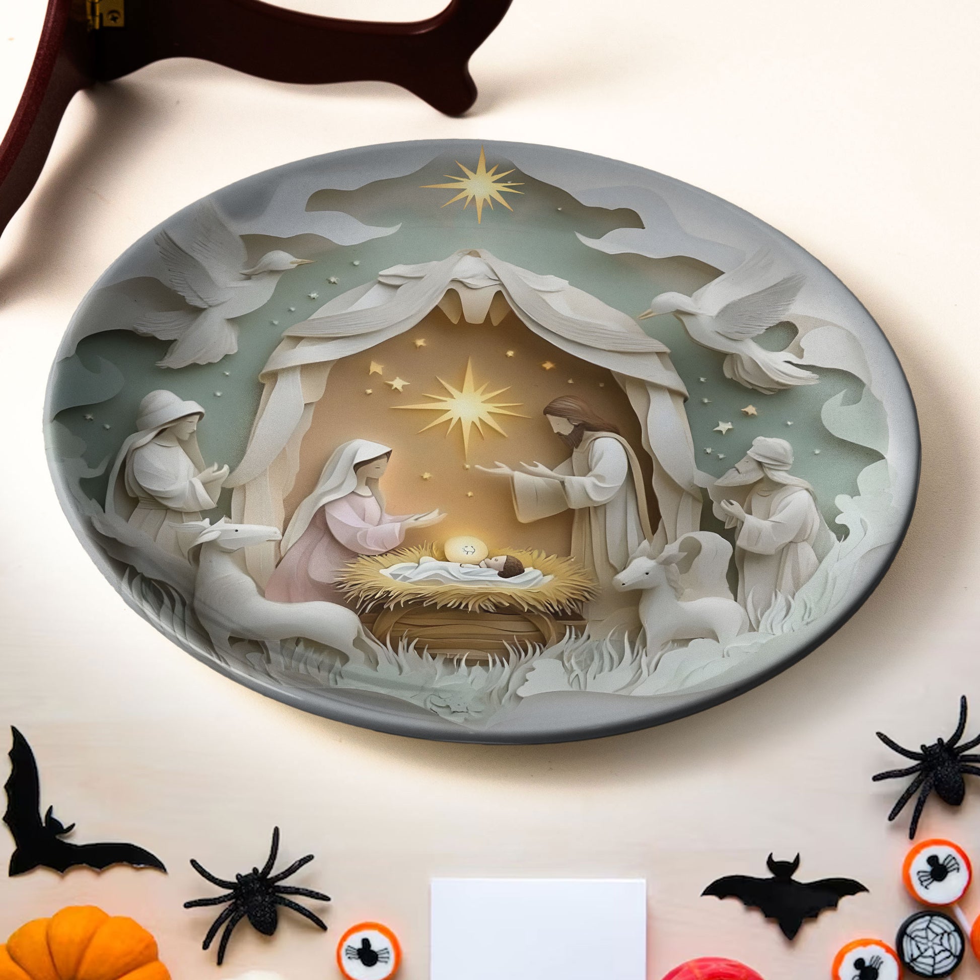 Peaceful Nativity Ceramic Plate – Handcrafted Holy Night Scene