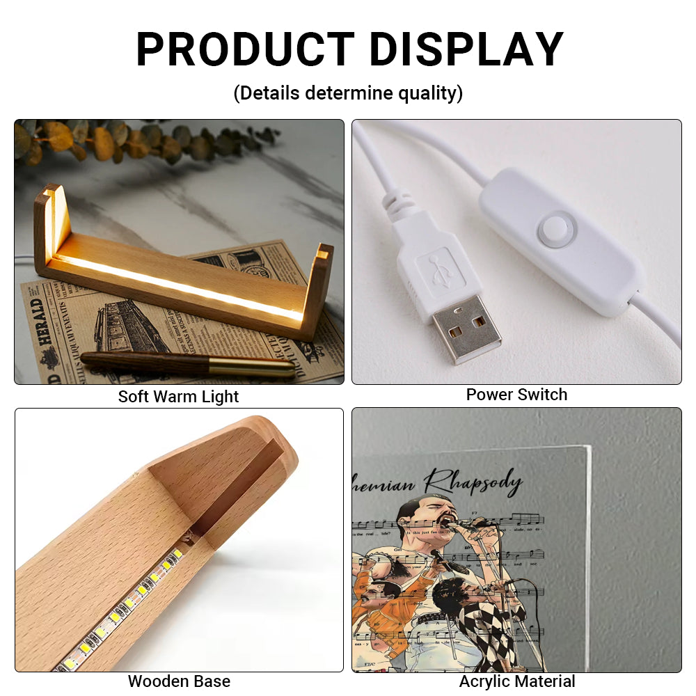 Experience the magic of Queen’s legendary masterpiece with the “Bohemian Rhapsody” LED Music Plaque. Featuring artistic illustrations of Freddie Mercury and the band overlaying the iconic sheet music, this elegant display glows with a warm, ambient light that brings rock nostalgia to life. Perfect for bedrooms, studios, or collectors, it’s more than décor — it’s a luminous tribute to one of the greatest songs ever written. A stunning gift for true Queen fans.