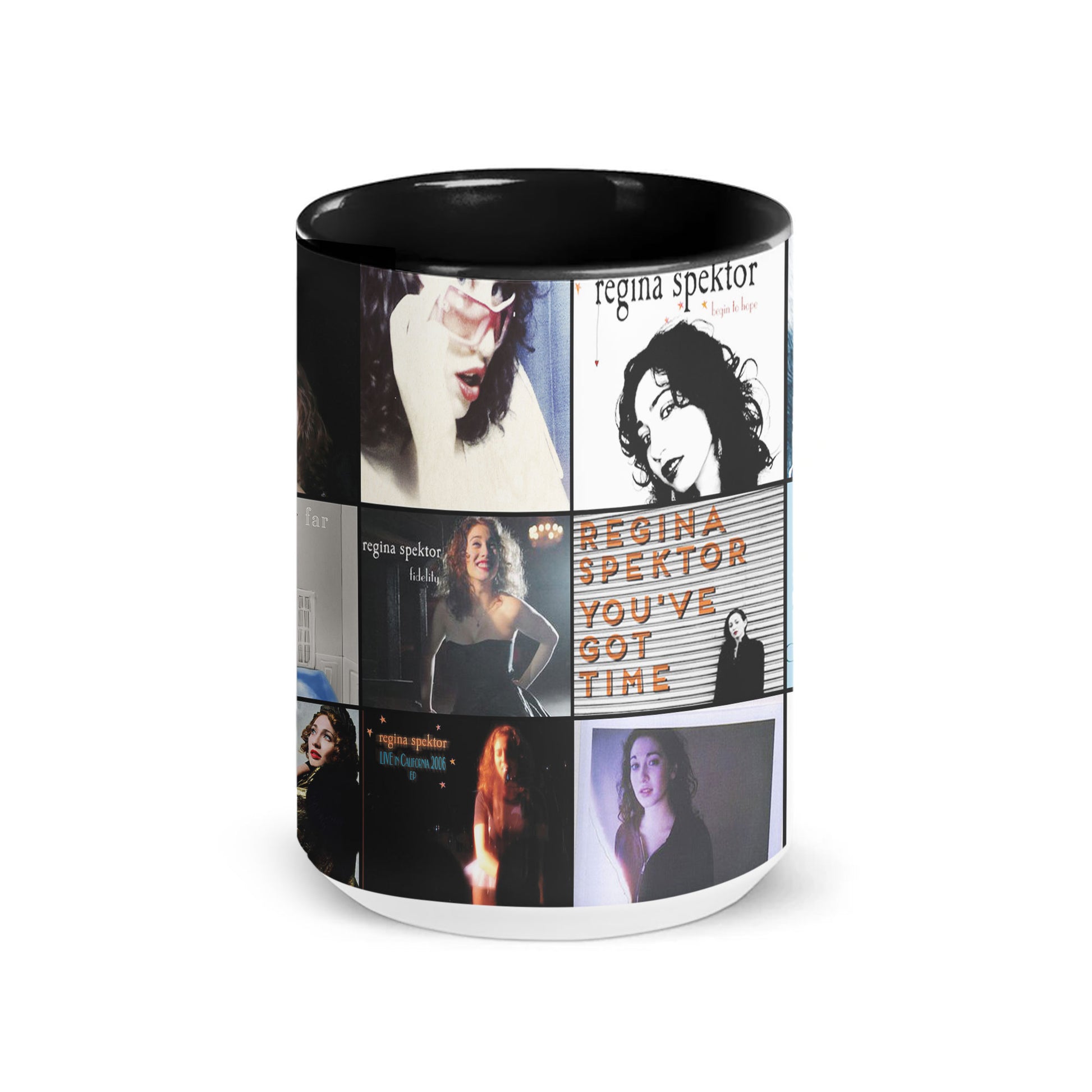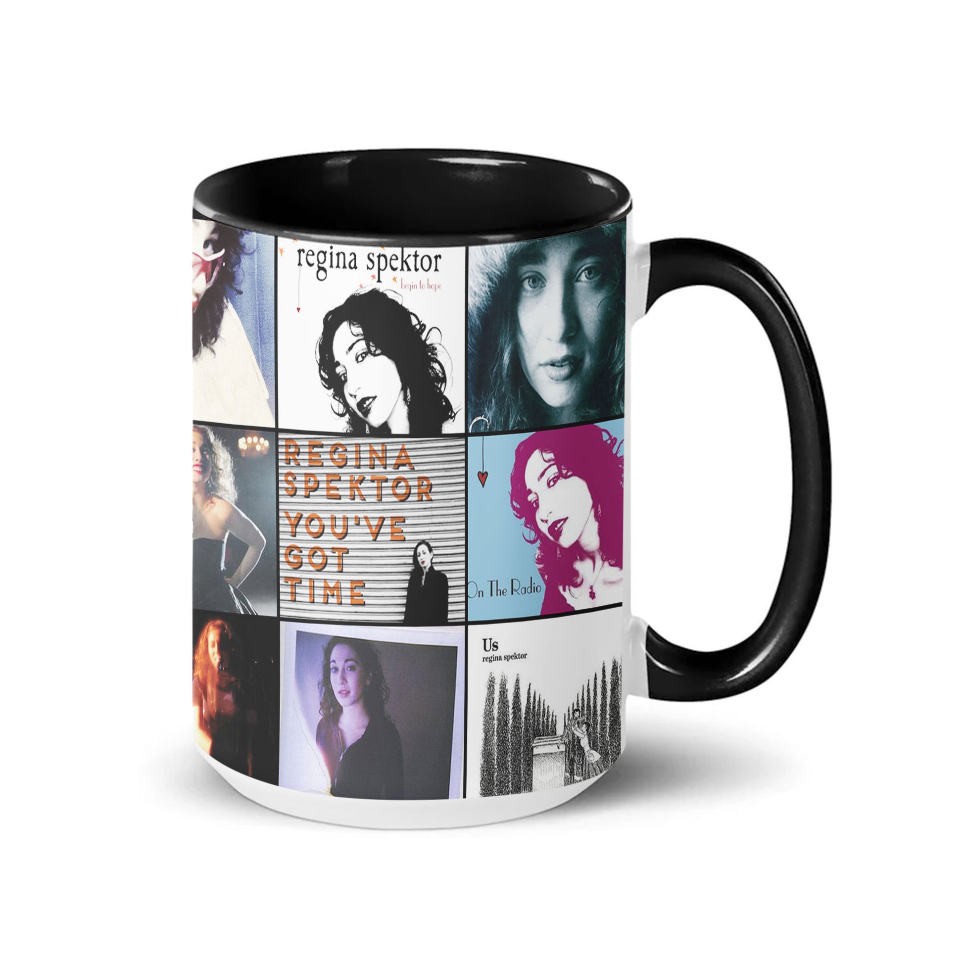 A charming accent mug featuring a collage of Regina Spektor’s most beloved album visuals — perfect for fans who adore her poetic lyrics, whimsical style, and soulful indie sound. A cozy daily companion for music lovers who want a touch of artistry with every sip.