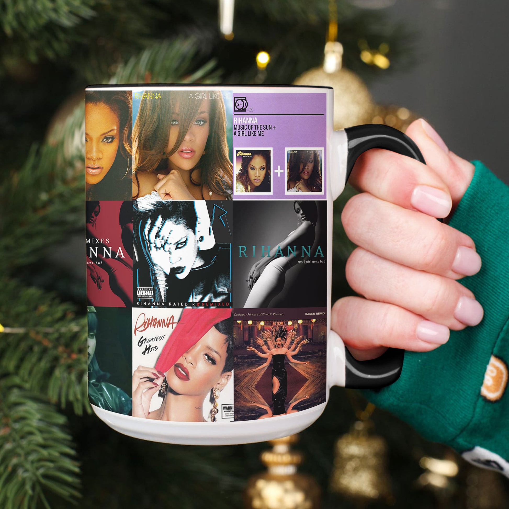 Rihanna Accent Mug – Iconic Era Album Cover Collage Gift