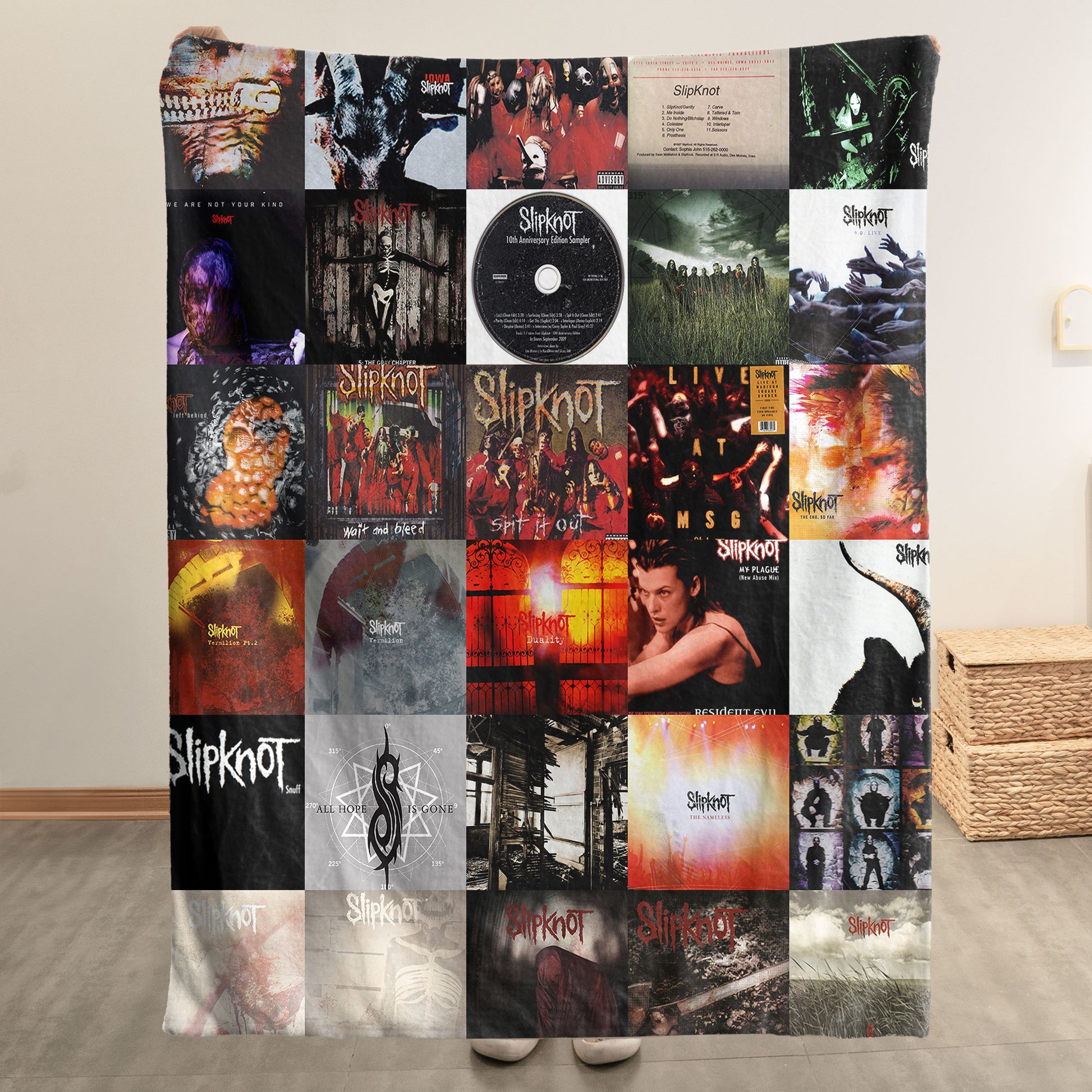 Slipknot Sherpa Blanket – Iconic Album Cover Collage Cozy Throw for Metal Fans