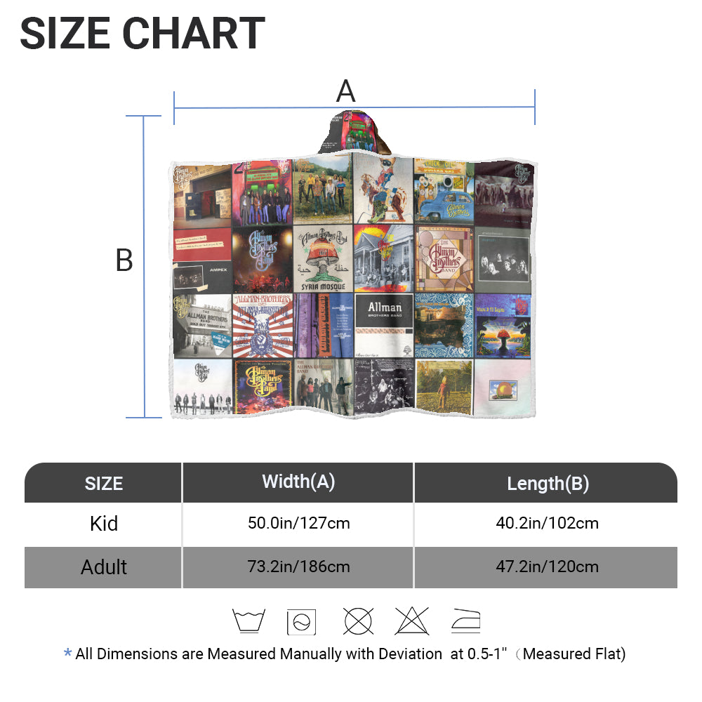 Wrap yourself in Southern rock legacy with this The Allman Brothers Band Wearable Hooded Blanket. Featuring a collage of the band’s most iconic album covers, this cozy design celebrates decades of blues-infused rock history.