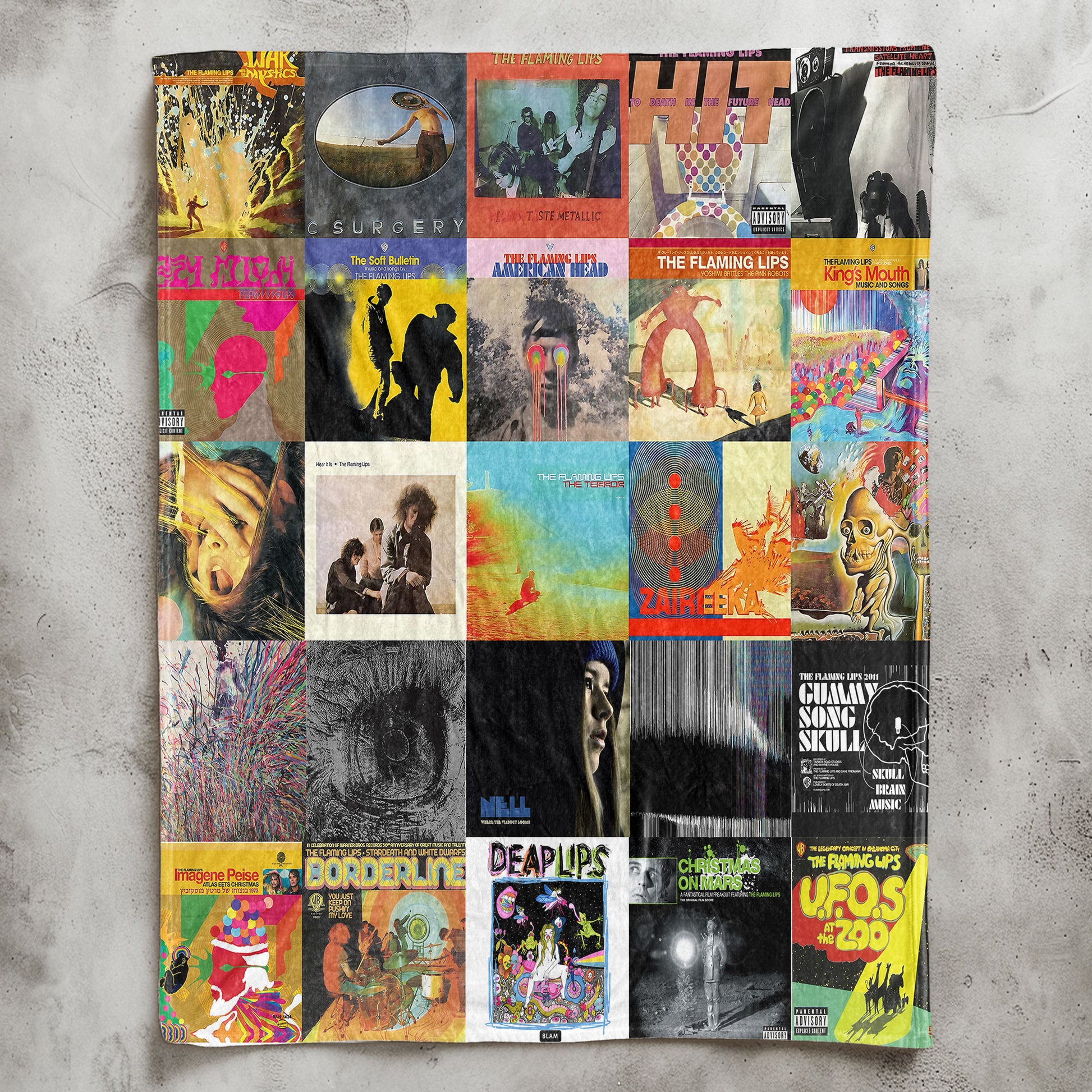Wrap yourself in pure cosmic energy with this ultra-soft Flaming Lips Sherpa blanket, featuring a vivid collage of their most mind-bending albums and experimental eras. Perfect for longtime fans, vinyl lovers, and anyone who wants their cozy space to feel a little more magical, weird, and wonderfully psychedelic.