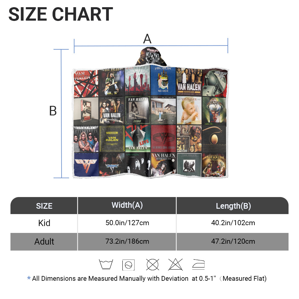 Turn up the heat and wrap yourself in the electrifying legacy of rock legends with this Van Halen Wearable Hooded Blanket. Showcasing a collage of iconic album covers, this design celebrates the band’s explosive sound and timeless style.