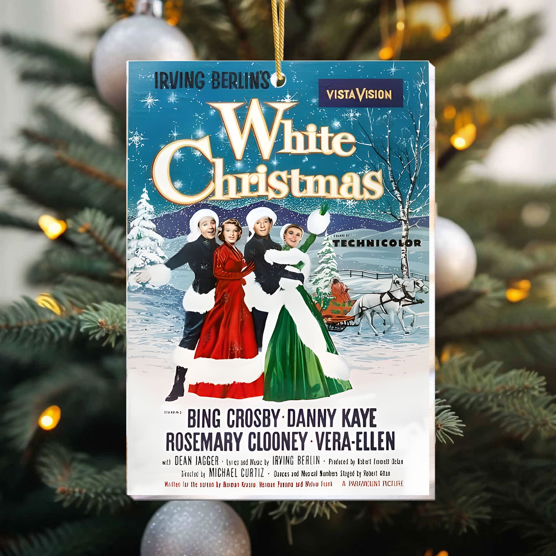 A nostalgic ornament showcasing the beloved White Christmas movie poster, filled with timeless charm, snowy scenery, and festive cheer. Perfect for fans who adore classic holiday musicals, cozy winter nostalgia, and the unforgettable elegance of this Technicolor favorite. A beautiful keepsake that brings vintage Christmas magic to every tree.