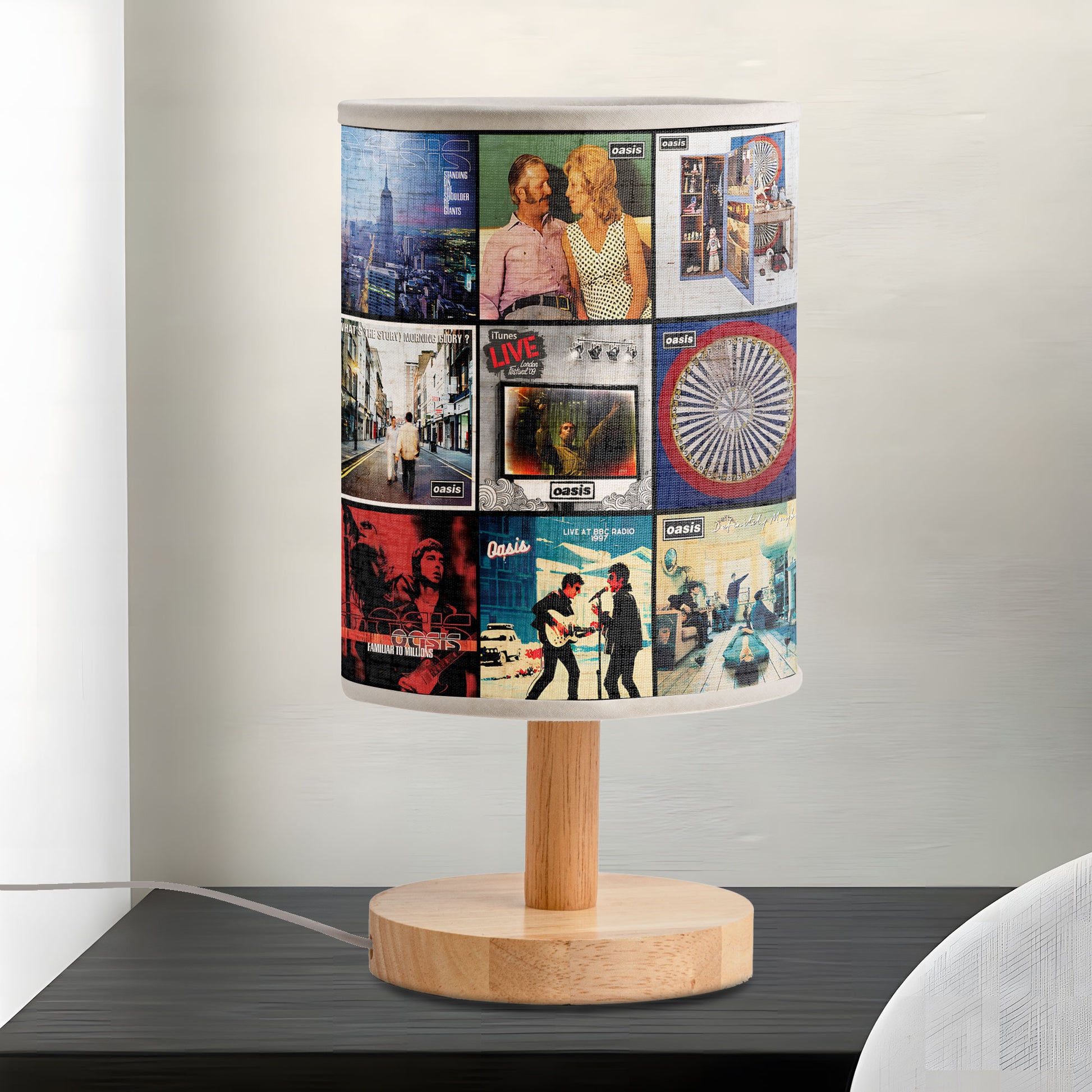 Crafted with a wooden base and a vibrant printed shade, it’s more than just a lamp—it’s a tribute to one of the greatest bands of all time. Place it on your desk, nightstand, or living room to let the Oasis vibe shine every night.